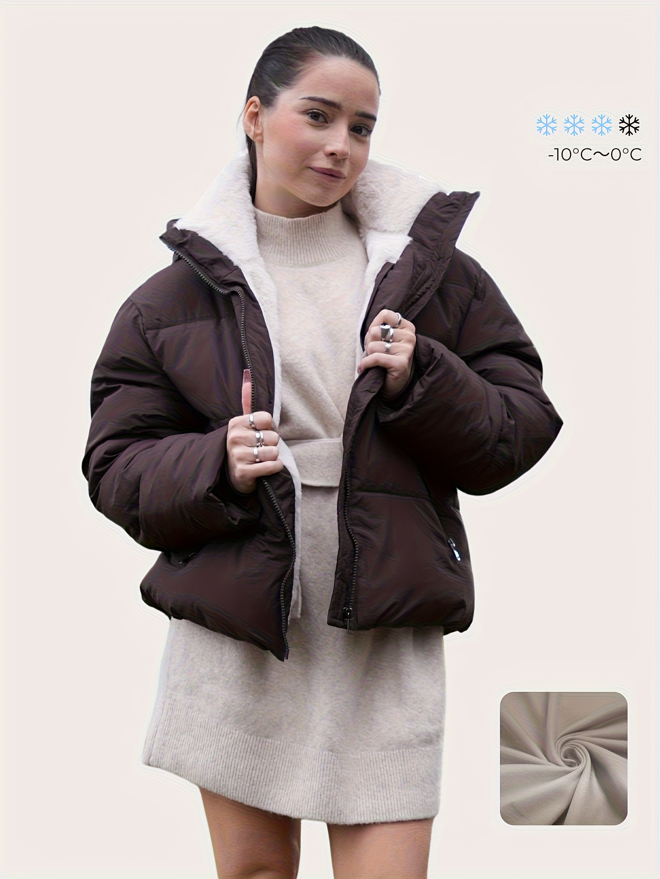 Women's Winter Fleece-Lined Hooded Jacket -Elegant Special & Relaxed Fit Coat with Zipper Front, Long Sleeve Casual Outerwear for Cold Weather, Seasonal Fashion, Warm Fabric, Cozy Material, Casual Attire