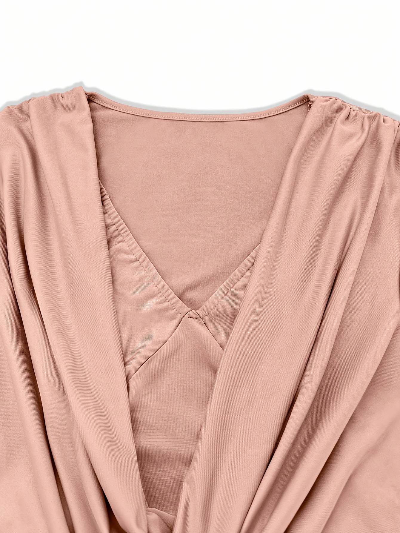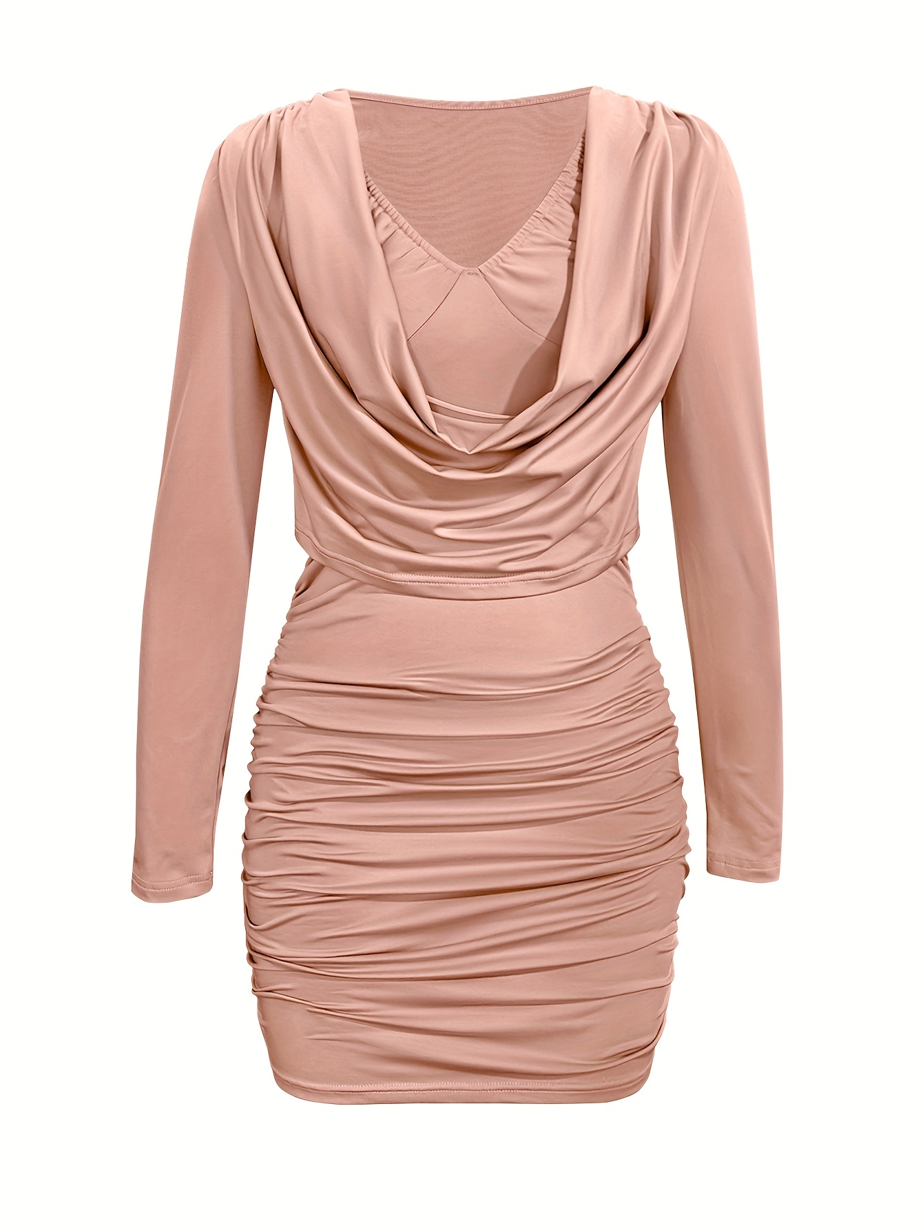Spring, Summer And Autumn Women's Sexy Dress, V-neck, Solid Color, Tight, Hip-hugging, Ruffled Design, Short Style, Sexy Hip-hugging One-piece Mini Dress