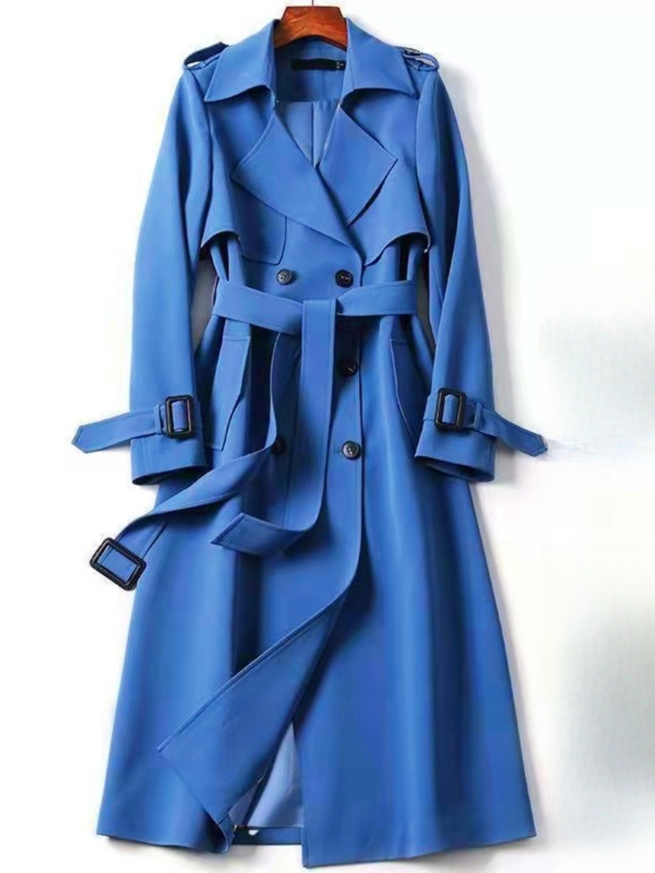 Women's British Style Medium-Length & Long Trench Coat - Knee-Length Button-Front Closure Coat with Wrinkle Detailing, Loose Fit All-Season Outerwear (Machine Washable) for, Casual & Smart-Casual Attire