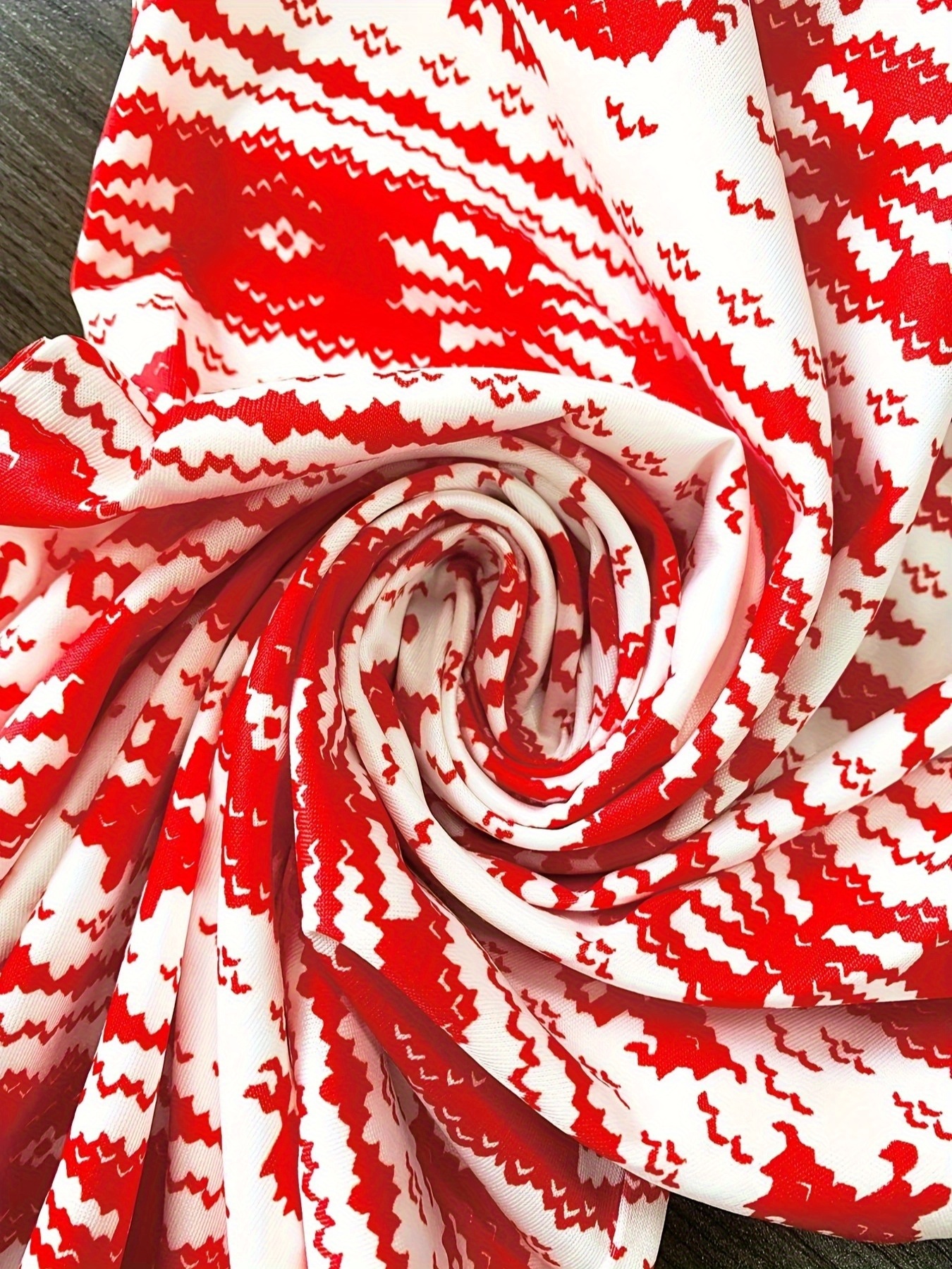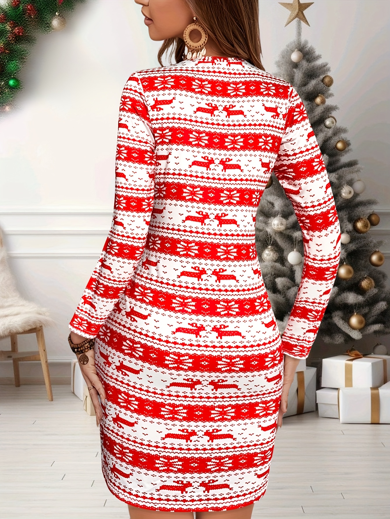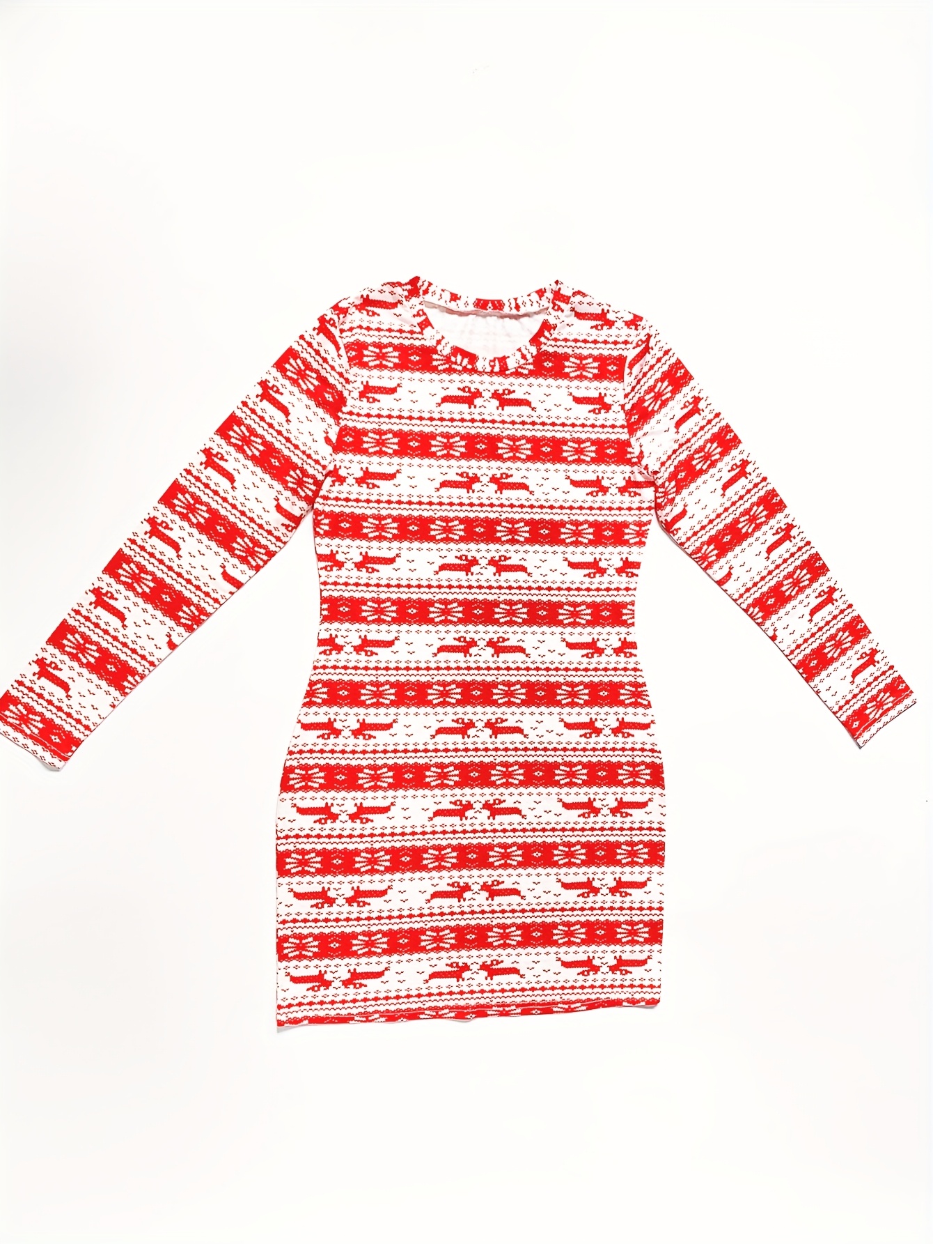 Women'S Christmas Party Dress - Long Sleeve Bodycon Formal gown, Red & White Holiday Print, Knee-Length Winter Party Outfit for Xmas, New Year'S Eve, Office Events - Elegant Holiday Attire, Christmas Dress, Seasonal Fashion, Comfortable Fit, Stretchy Fabric, Adult Women