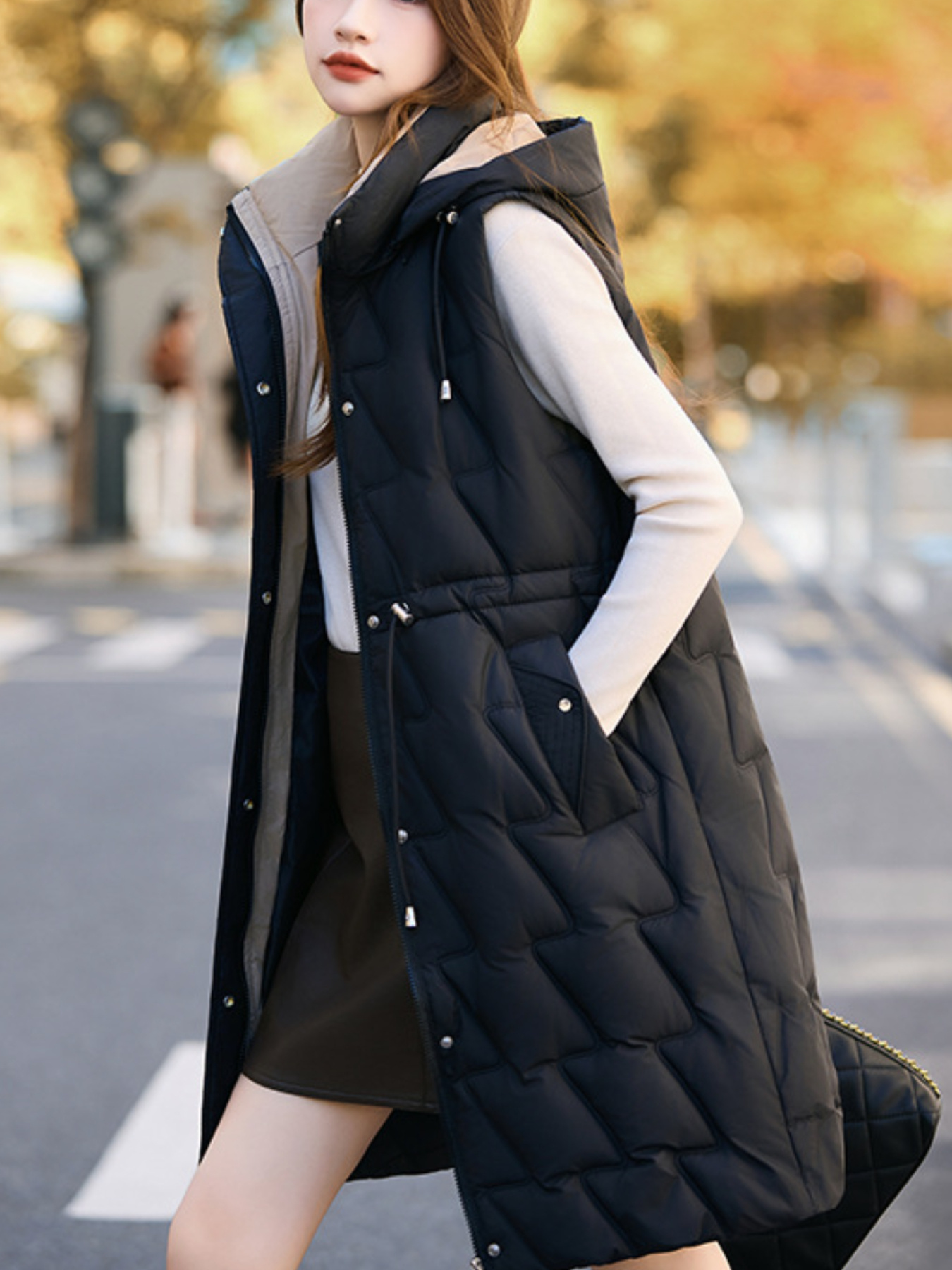 Women'S Mid-Length Hooded Vest in a Warm Design, Perfect for Autumn And Winter, Featuring a Loose Fit And Korean Style.
