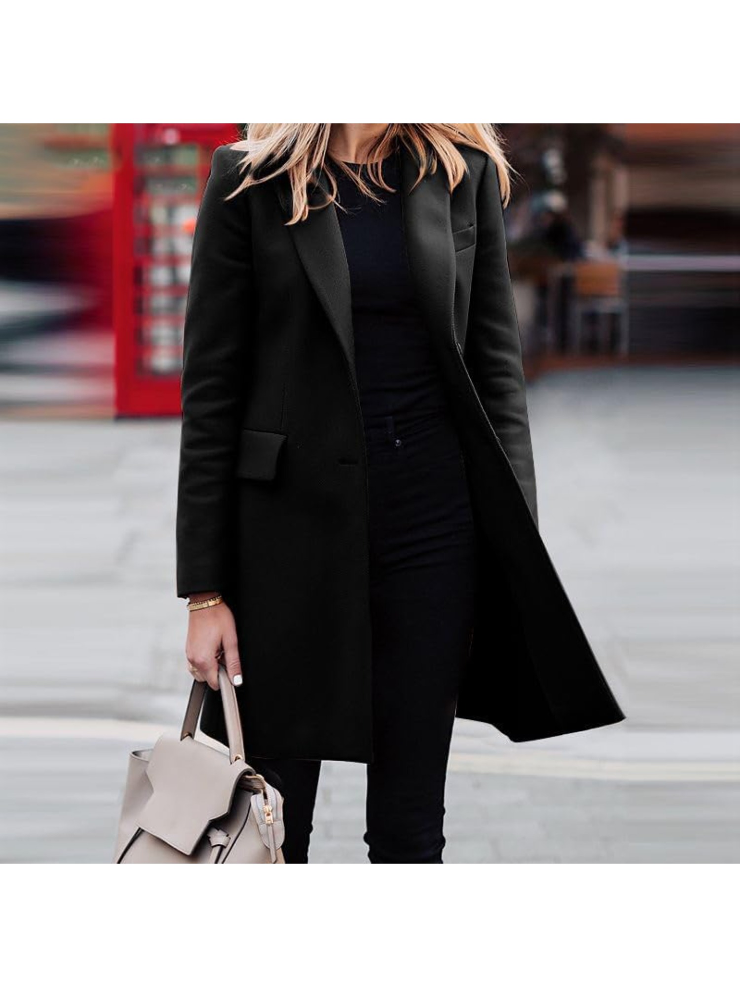 Women's Elegant Blazer Trench Coat Jacket - Button Front Closure Lapel Collar Shacket Cardigan Overcoat, Loose Fit All-Season Outerwear, Casual to Professional Wear (Single-Breasted Button for, Solid Color)