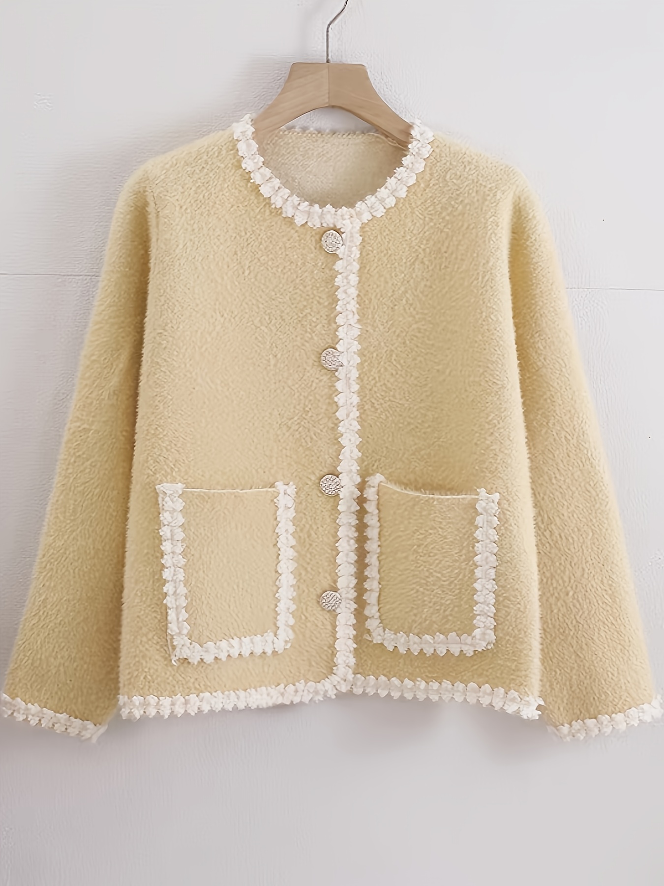 Women's Elegant Solid Color Winter Jacket - Single-Breasted Button Front Coat with Pockets, H-Line Silhouette, Long Sleeve Warm Outerwear for Fall & Winter, Casual or Dressy Occasions