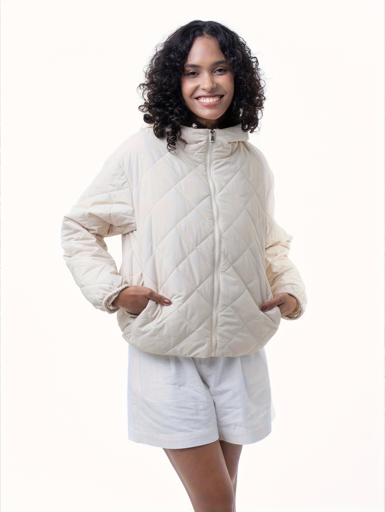 Women'S Fitted Hooded Coat with Pockets | Adjustable Drawstring Hood, Lightweight and Comfortable, Solid Color, Ideal for Autumn and Winter