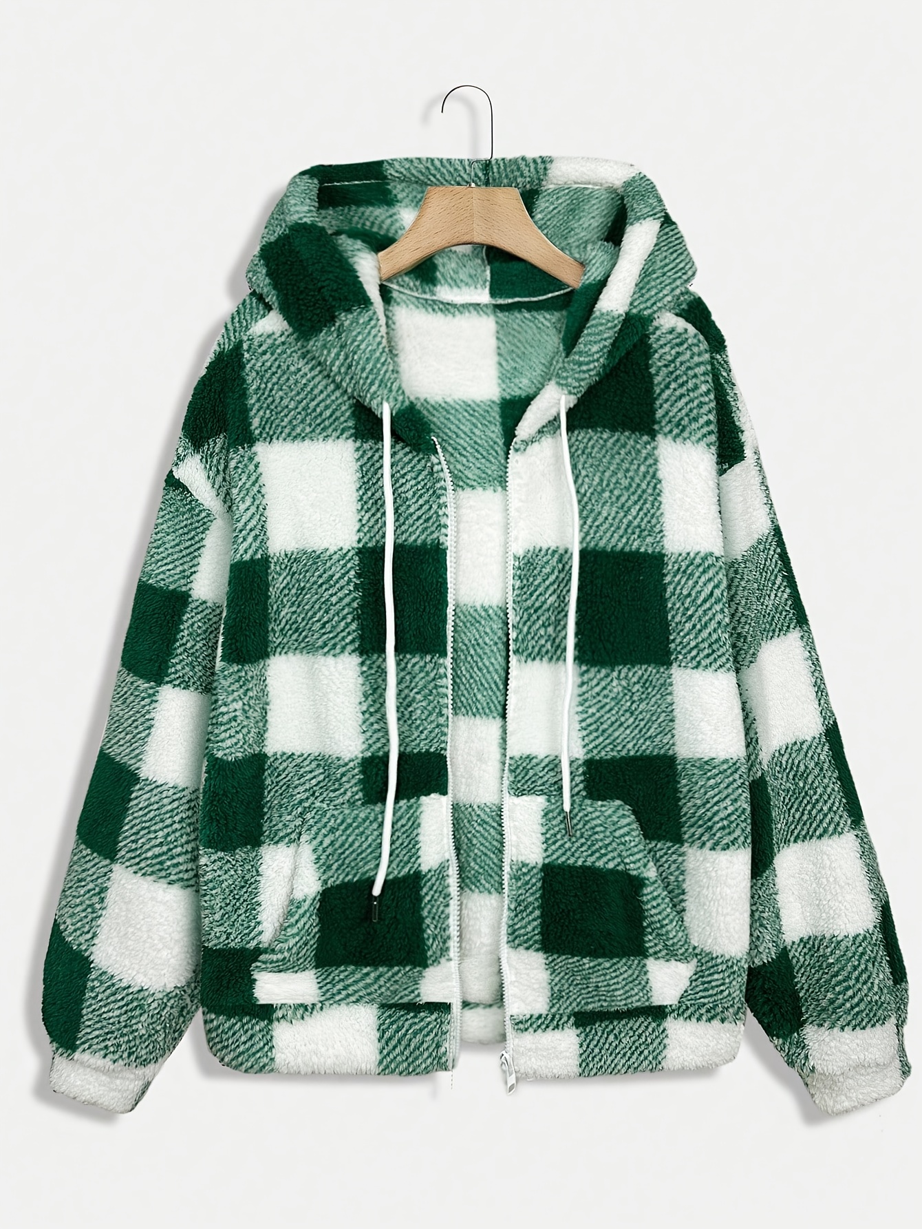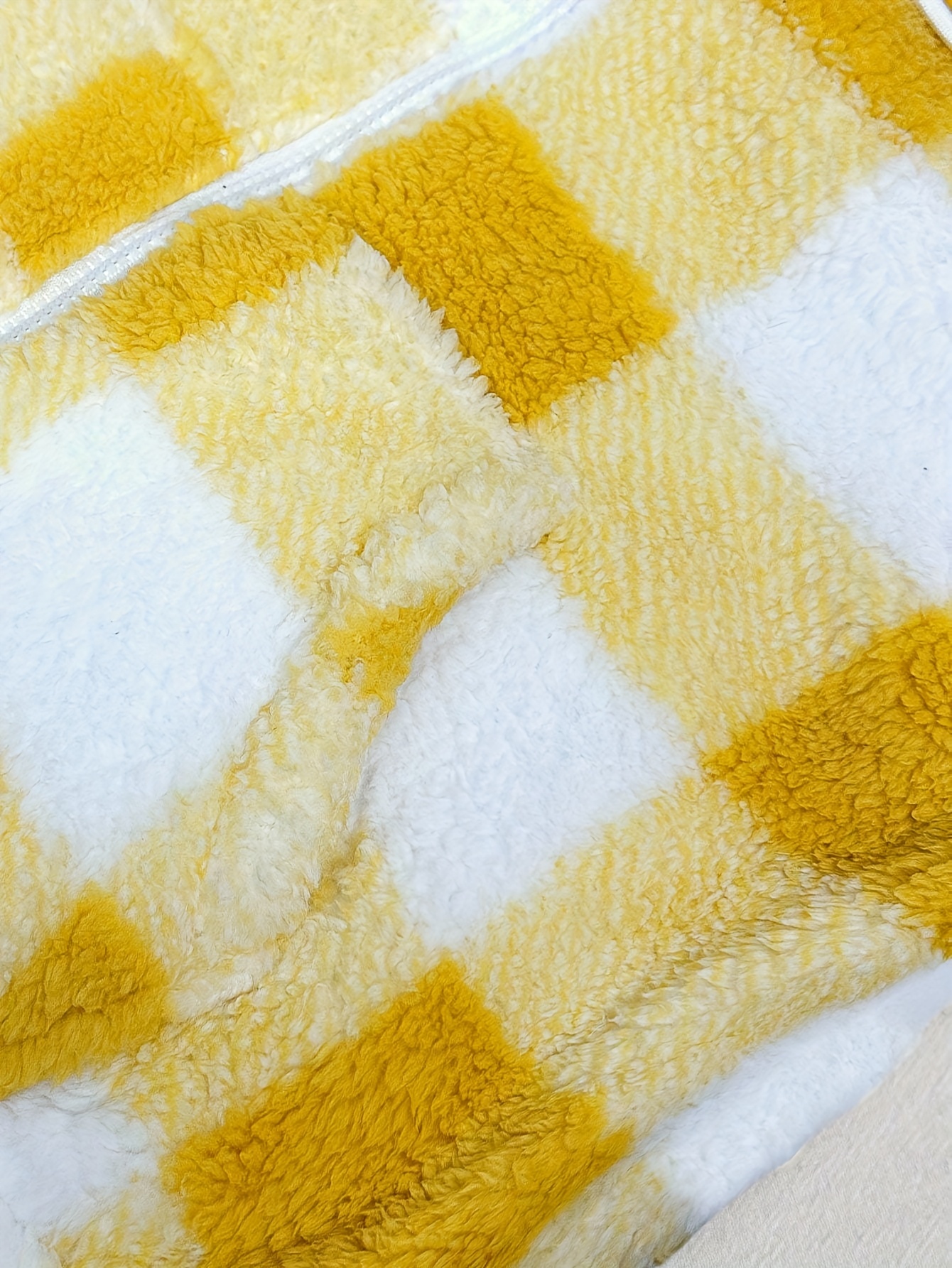 Women'S Plaid Fleece Coat - Mustard-Yellow & Checkered Winter Warmth, Soft Plush Jacket with Full-Zip Front Closure, Cozy Casual Outerwear for Fall & Winter, Winter Clothing, Fall Fashion, Stylish Outerwear, Fashion Lovers