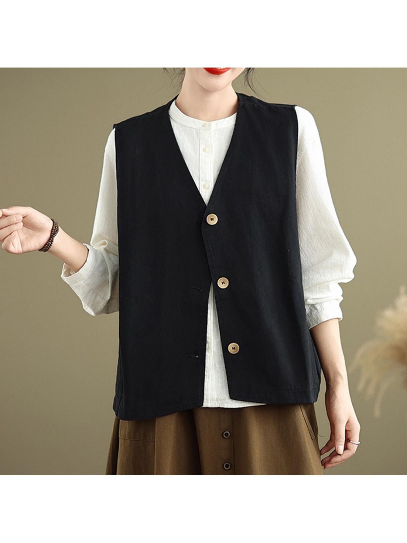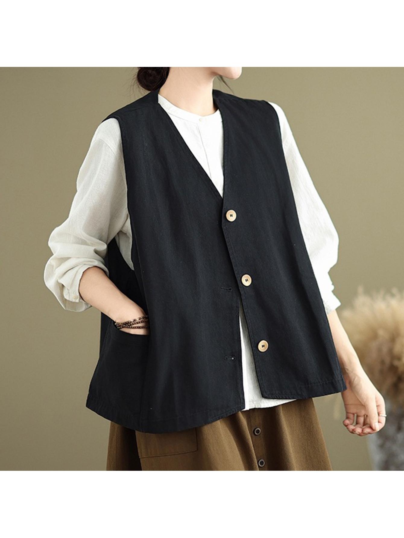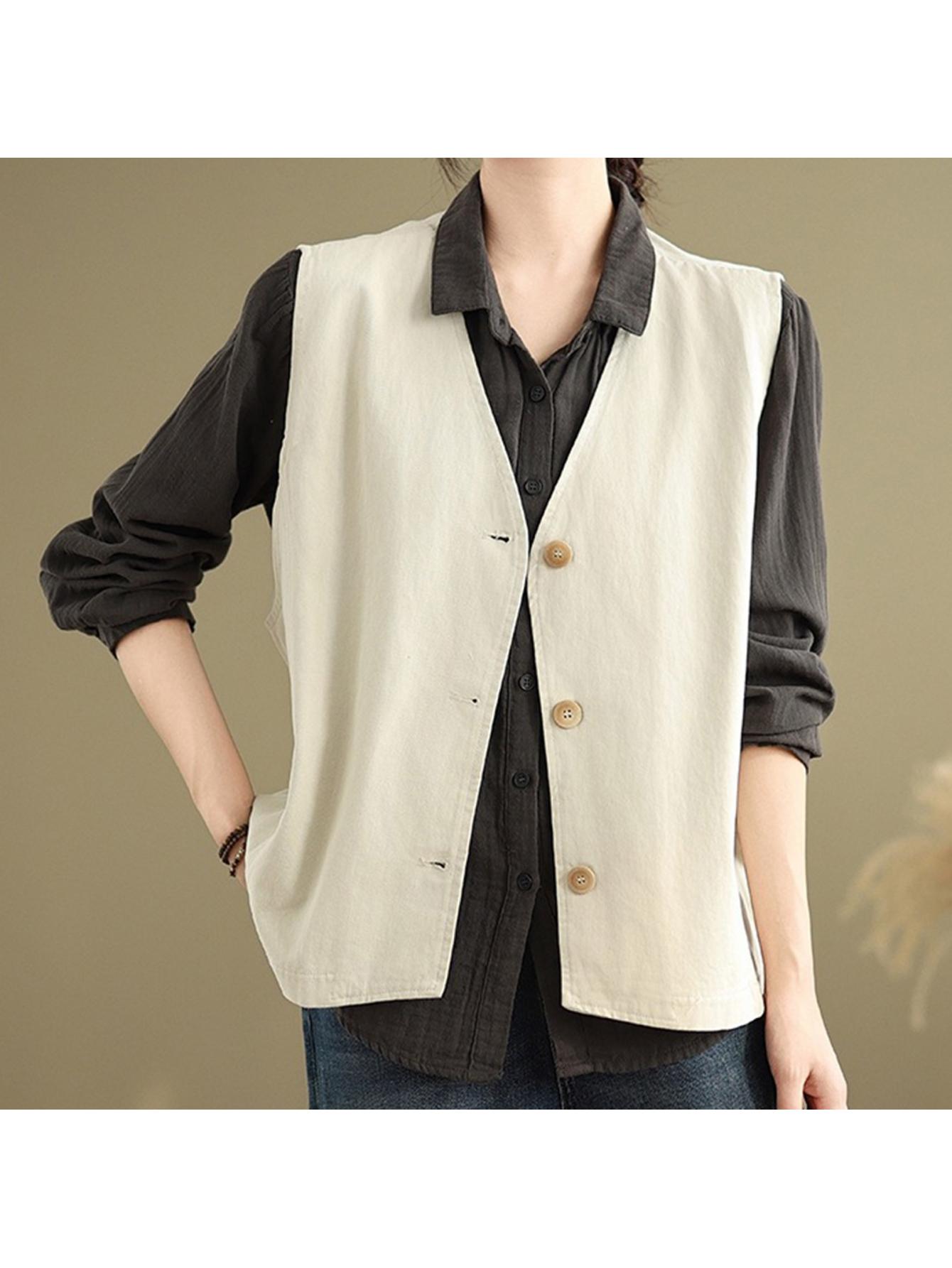 Women's Sleeveless H-Line Regular Fit Jacket - Solid Color Round Neck Winter Coat with Zipper Front Closure, Casual to Semi-Formal Outerwear for Fall & Winter Layering (Blouses/C Dresses under Jacket)
