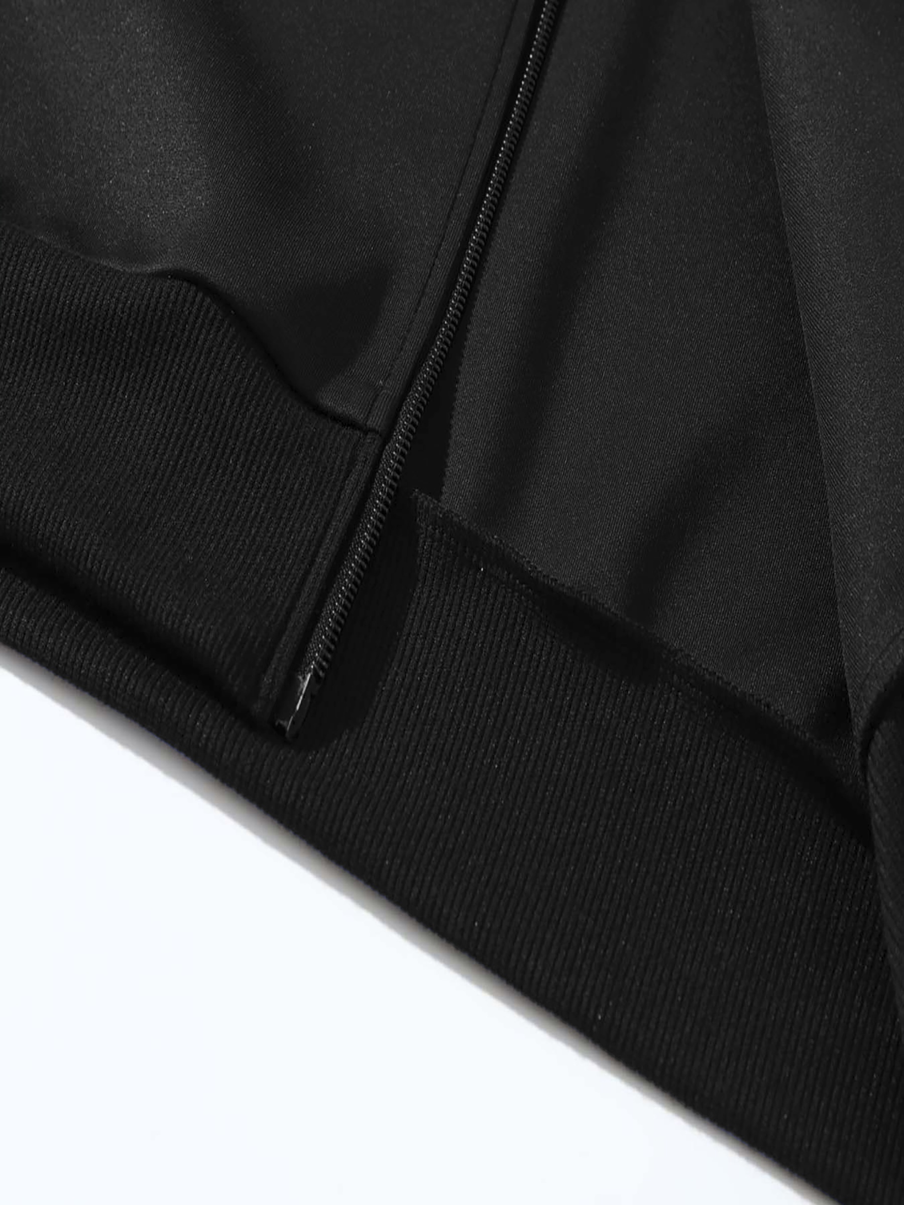 Women's Turkey Squad Graphic Zip-Up Jacket - Black Casual Slim Fit Stand Collar Coat with Pockets, Machine Washable Fall Winter Outerwear