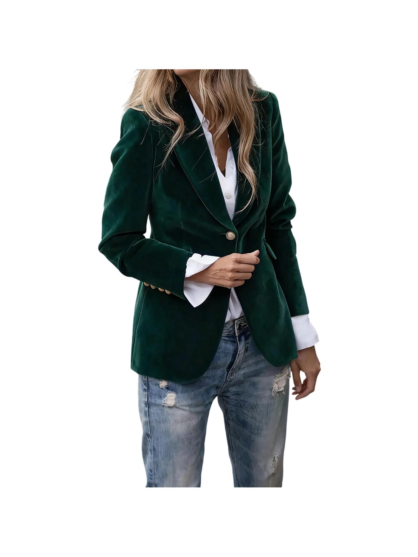 Women'S Winter Solid Color Tailored Suit Jacket - Casual to Semi-Formal Coat with Zipper Closure, H-Line Silhouette & Round Neck, Long Sleeve Layering Outerwear for Fall/Winter, Versatile Cardigan Set in GreenNavy/Charcoal - No Belt Required