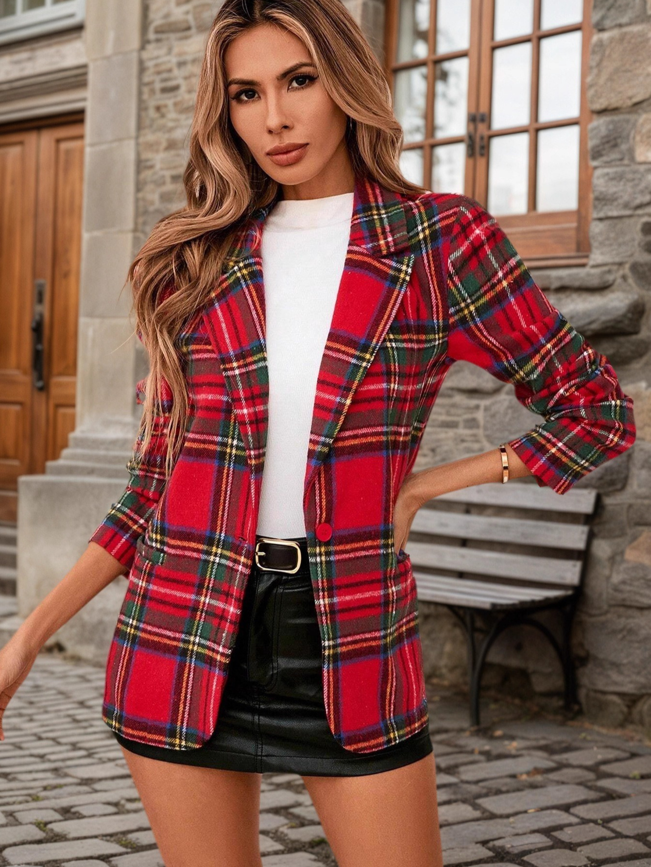 New Women'S Jacket | Stylish, Slim Fit, Trendy Design, Autumn Loose Casual Long Sleeve Christmas Plaid Versatile Suit Jacket, Single Breasted, Half Placket, Button Details.