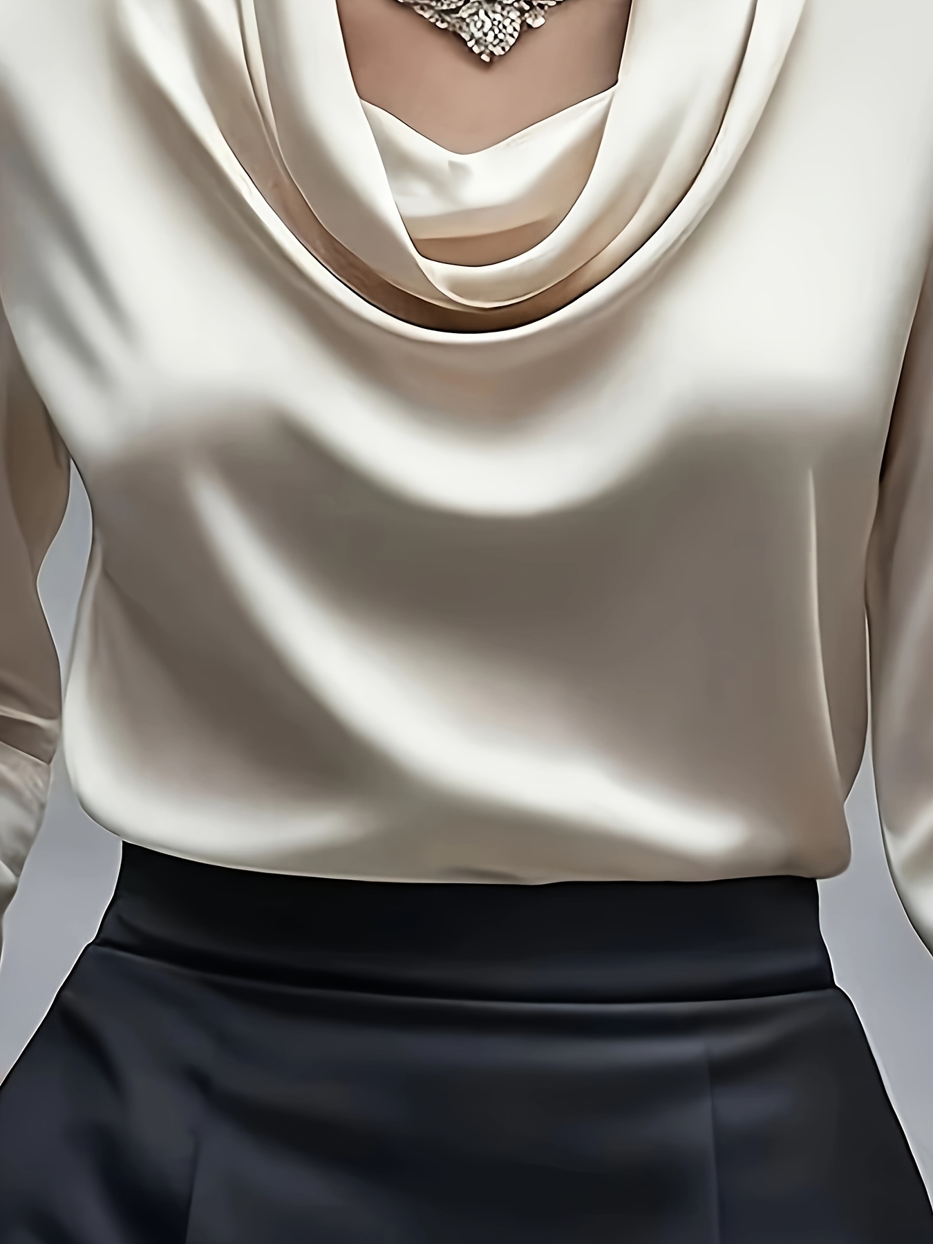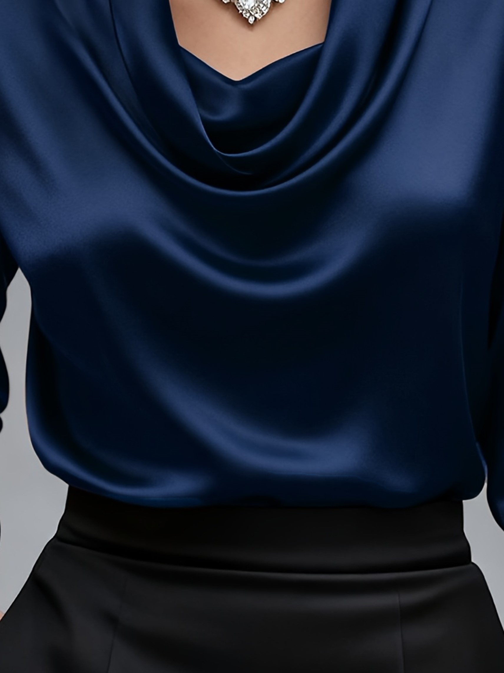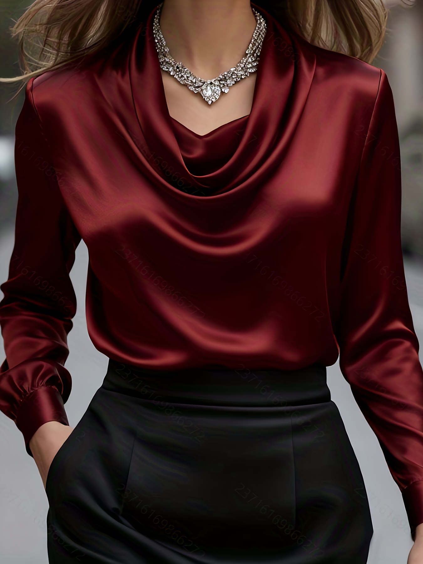 [Solid Color Versatile] Elegant Women's Long Sleeve Blouse - Soft Wrinkle-Resistant, Button-Front, Round Neck & Collar, All-Season Office Shirt