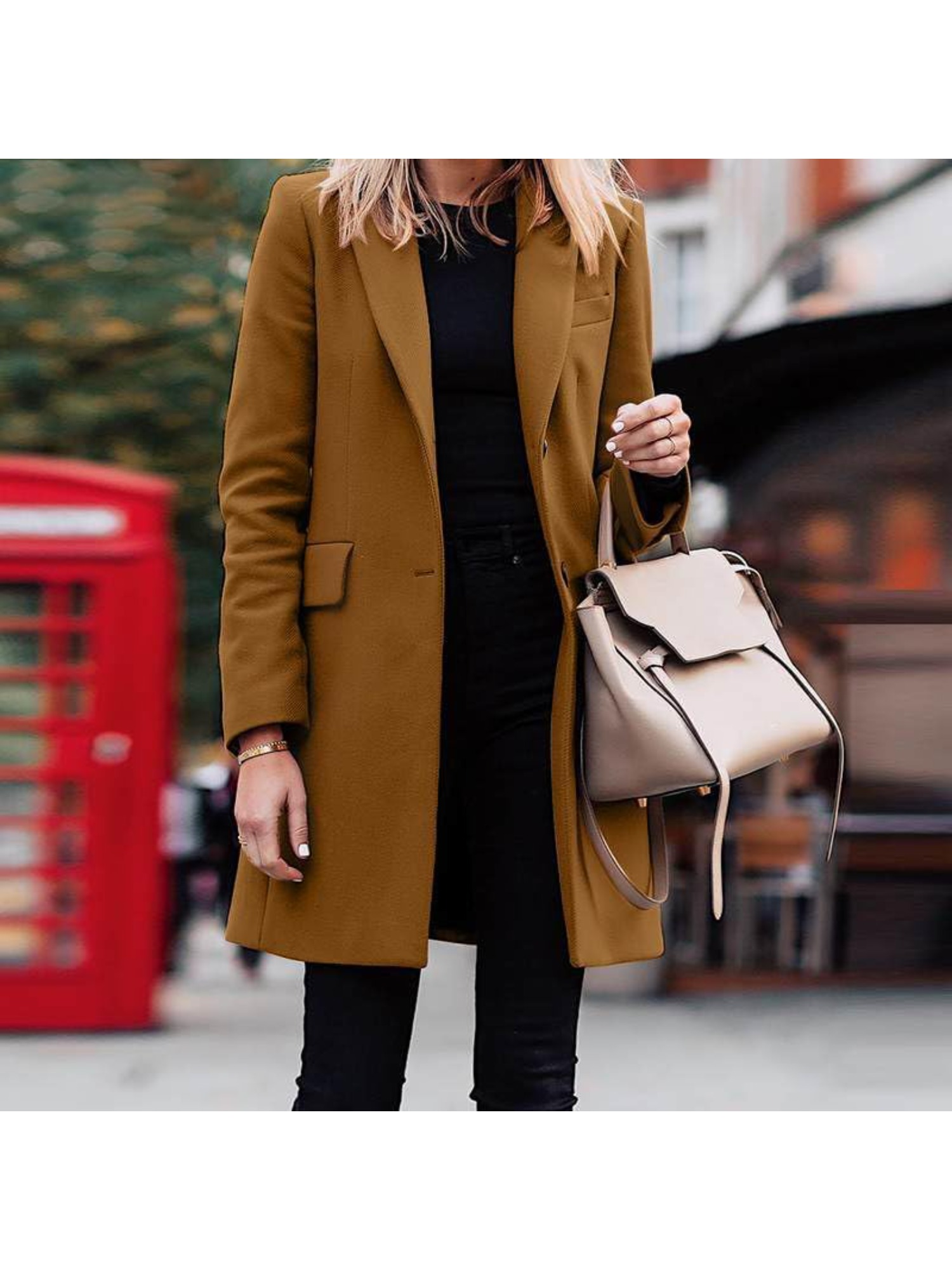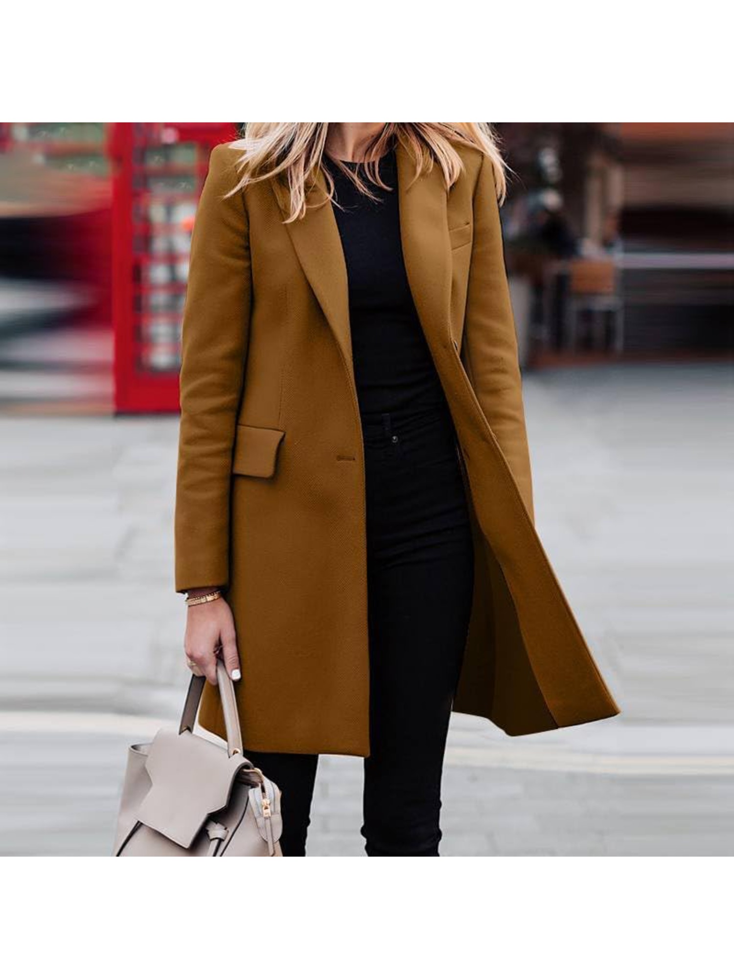 Women's Elegant Blazer Trench Coat Jacket - Button Front Closure Lapel Collar Shacket Cardigan Overcoat, Loose Fit All-Season Outerwear, Casual to Professional Wear (Single-Breasted Button for, Solid Color)