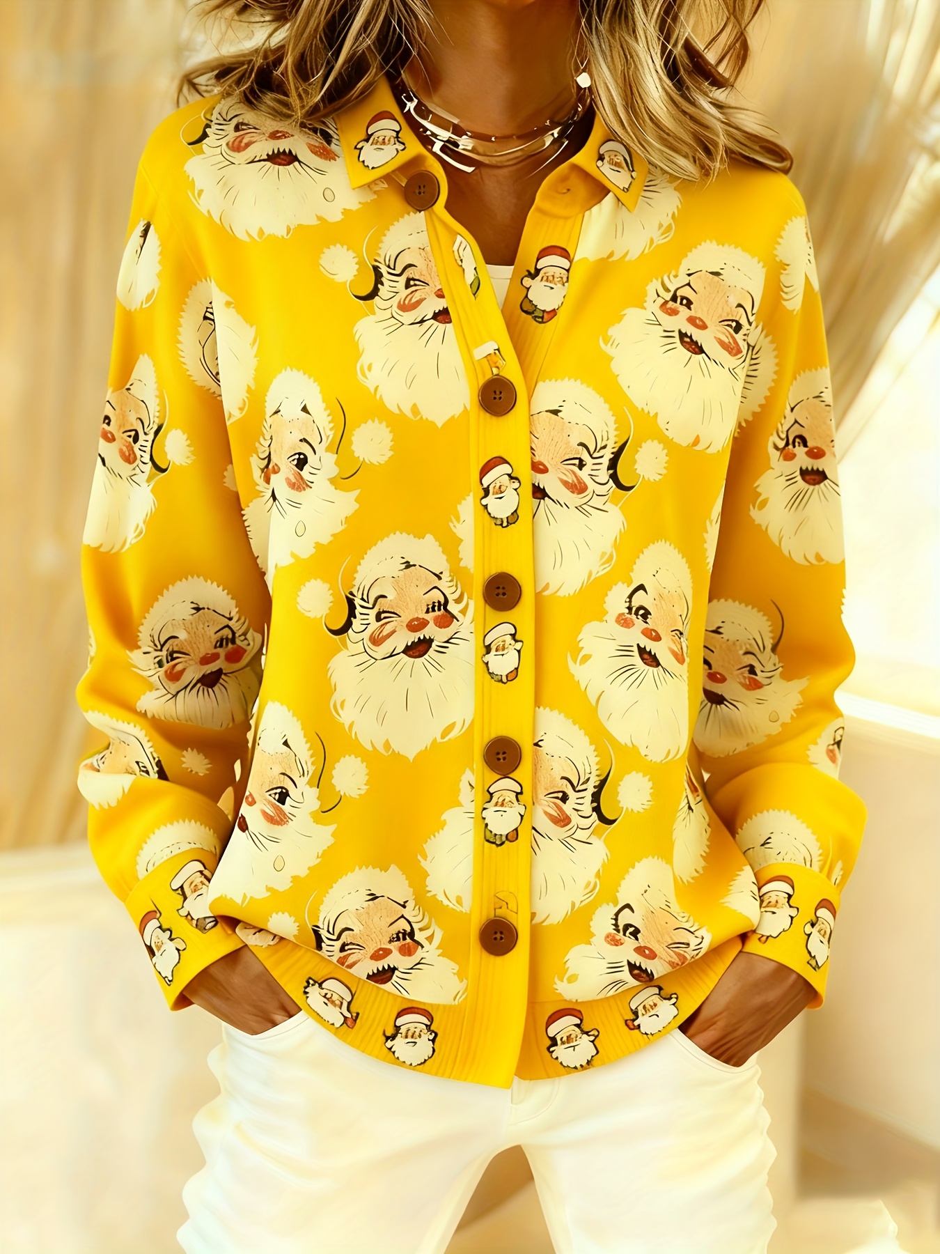 Women's Lapel Button Front Cardigan Jacket with Santa Claus & Christmas Prints - Warm Winter Coat for Christmas Parties, Lapel Collar Outerwear, Machine Washable Blazer (Autumn/Winter), 2D Flat
