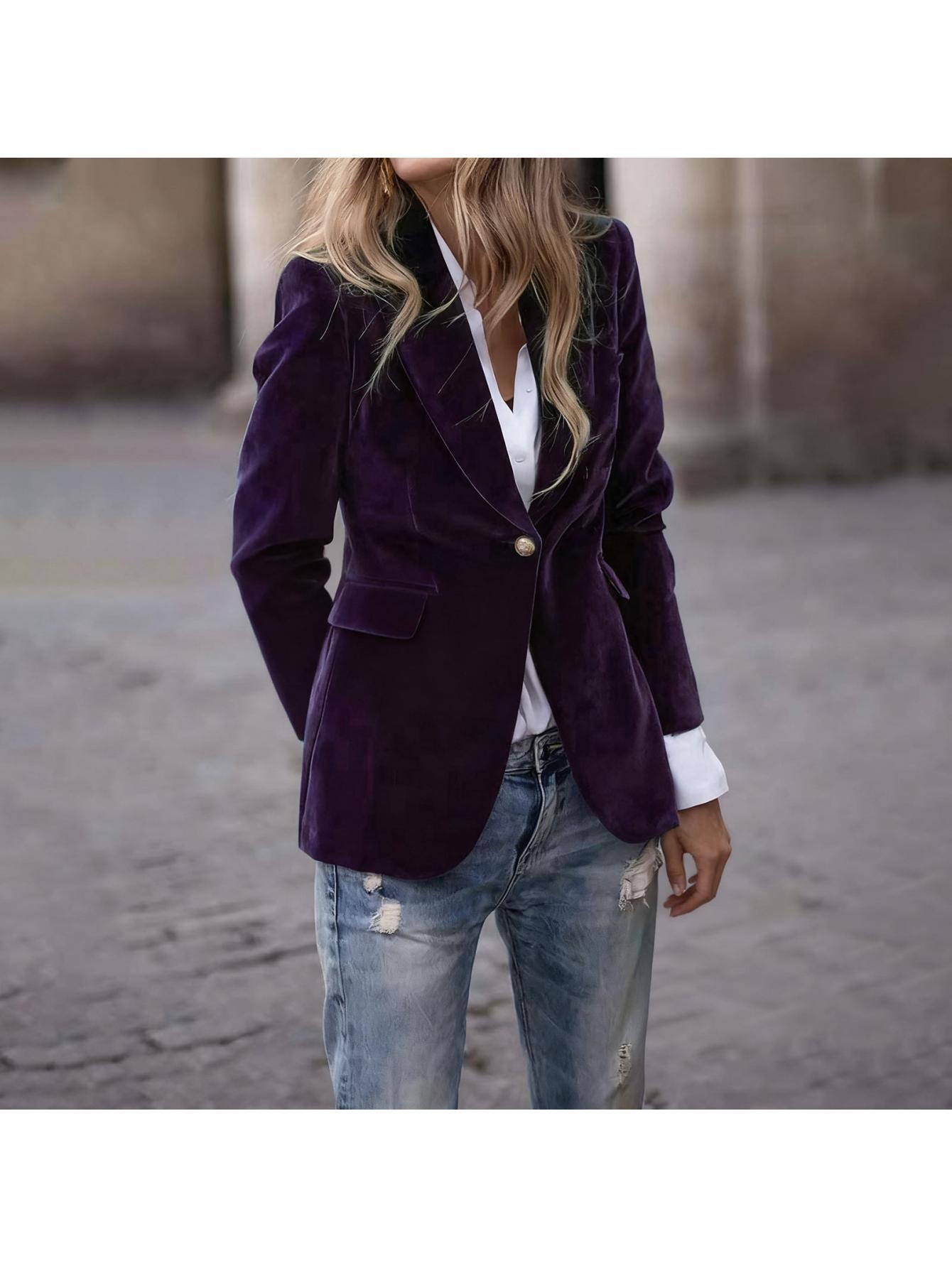 Women'S Winter Solid Color Tailored Suit Jacket - Casual to Semi-Formal Coat with Zipper Closure, H-Line Silhouette & Round Neck, Long Sleeve Layering Outerwear for Fall/Winter, Versatile Cardigan Set in GreenNavy/Charcoal - No Belt Required
